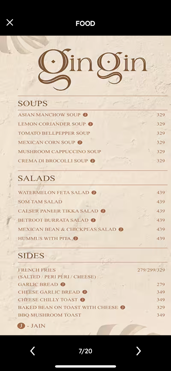 Don't forget to indulge in their heavenly desserts like the Sizzling Brownie or creamy Nutella Shake, both priced at ₹350. With an inviting ambiance and attentive service, GinGin Cafe and Bar promises a memorable culinary experience that keeps guests coming back for more.